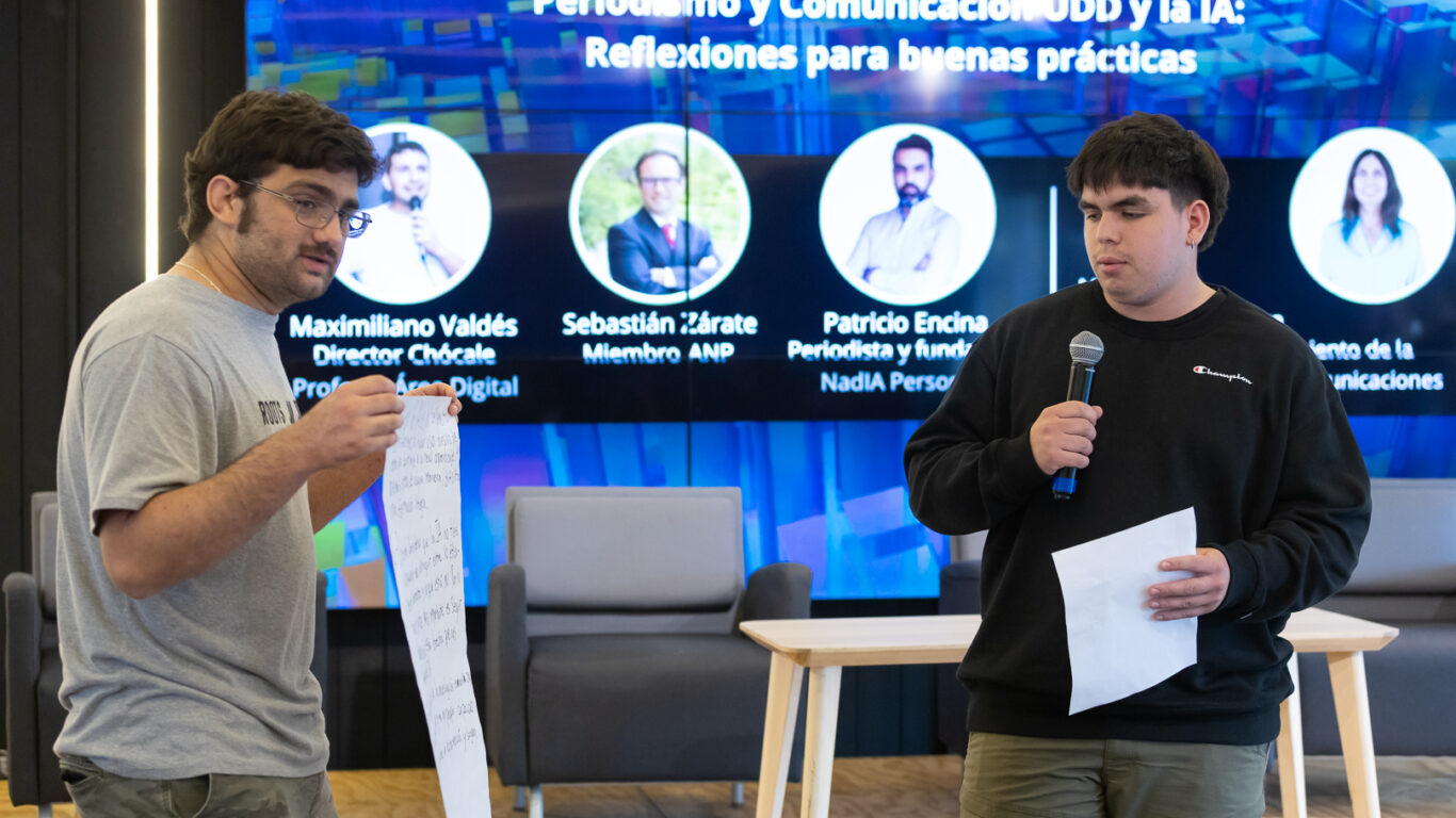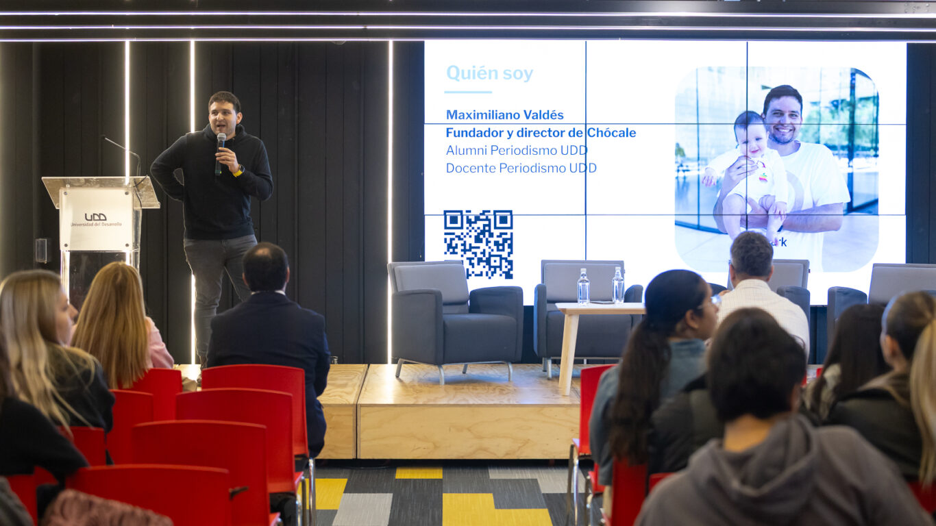 La instancia, que se llevó a cabo en el Campus Rector Ernesto Silva Bafalluy tuvo un panel de expertos conformado por el docente UDD y también director de «Chócale», Maximiliano Valdés, el Secretario General de la Asociación Nacional de Prensa, Sebastián Zárate y al fundador de «NadIA Personal» Patricio Encina.