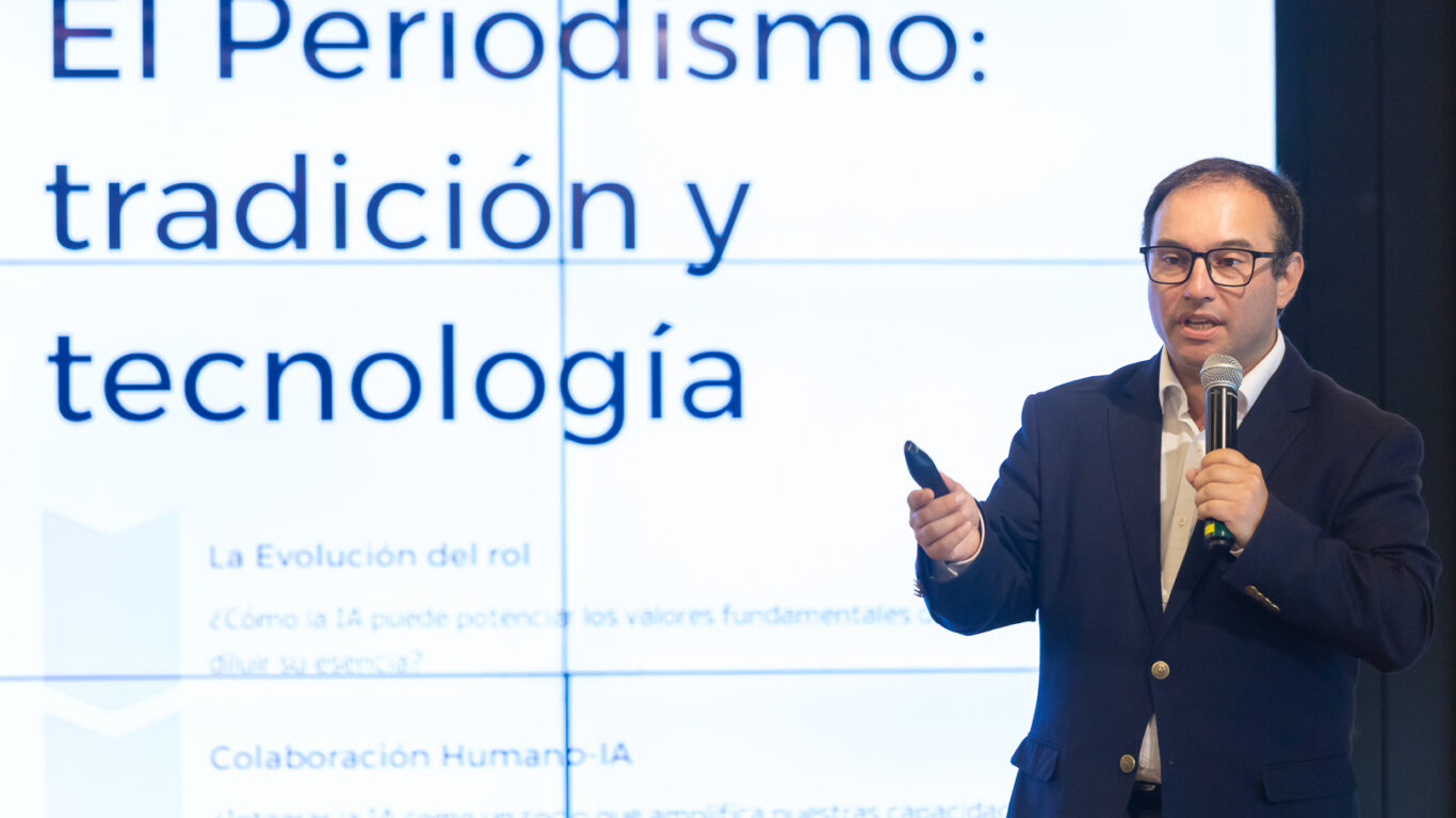 El primero en exponer fue el docente del área digital de la Facultad de Comunicaciones, Maximiliano Valdés, quien se refirió a las proyecciones de la aplicación de estas tecnologías asegurando que «la Inteligencia Artificial está imponiendo un gran desafío al periodismo, a la actividad periodística, a los medios y a la sociedad en su conjunto. Lo importante es que la IA no sea un atajo, sino que una nueva herramienta que se incorpore a nuestro día a día, que nos ayude a ser mejores profesionales»