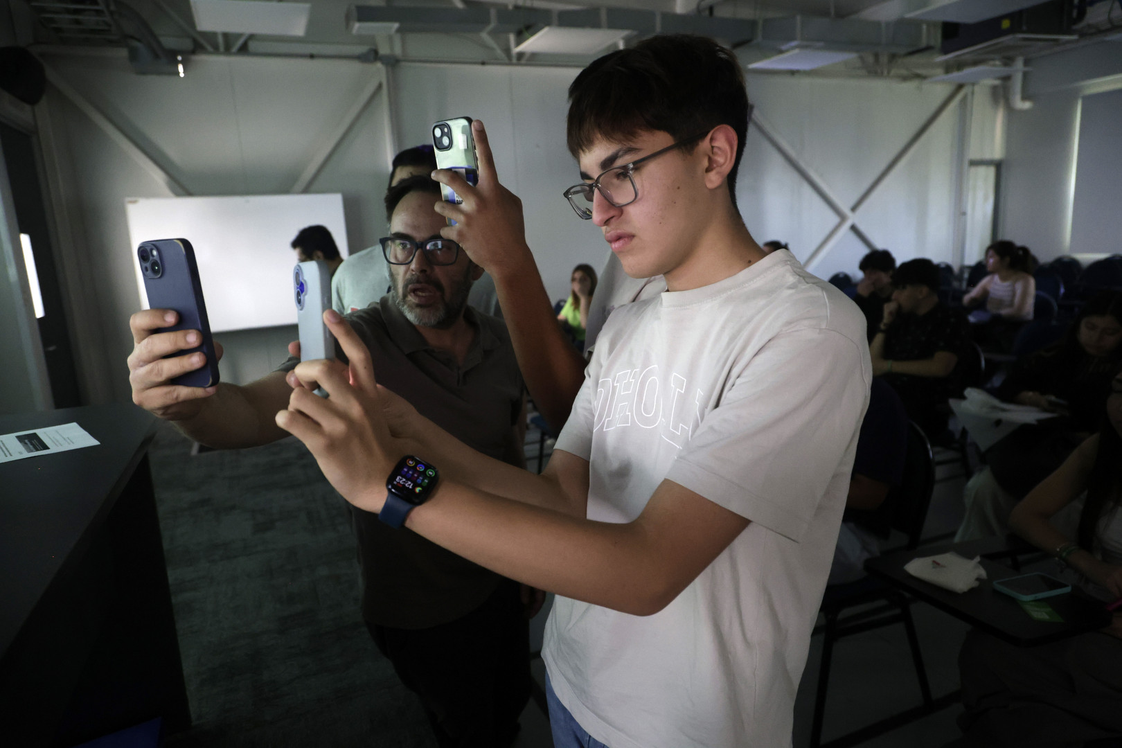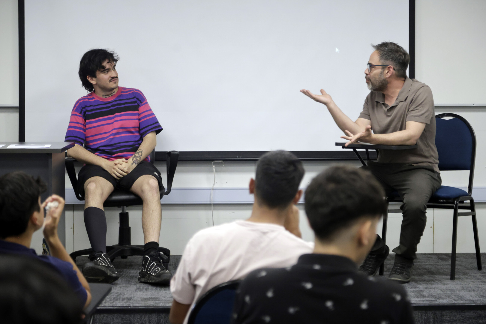 Entre preguntas, reflexiones y debates sobre el futuro del sector, los estudiantes compartieron sus inquietudes sobre la industria cinematográfica, su sostenibilidad y los desafíos de crear en un mundo saturado de imágenes virales. Luego, pasaron a la práctica: mediante una aplicación especializada, crearon sus propios personajes virtuales, experimentando de primera mano cómo la realidad aumentada puede expandir el universo narrativo más allá de la pantalla.