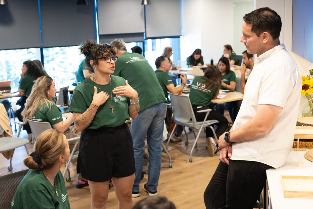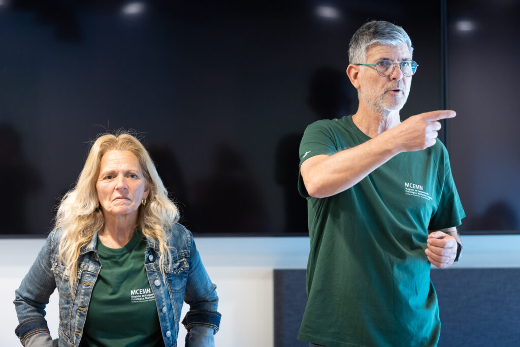 La jornada incluyó también una sesión práctica liderada por el consultor Carlos Sandoval, quien dirigió la actividad “Sacar la voz”, centrada en técnicas vocales adaptadas del ámbito teatral.