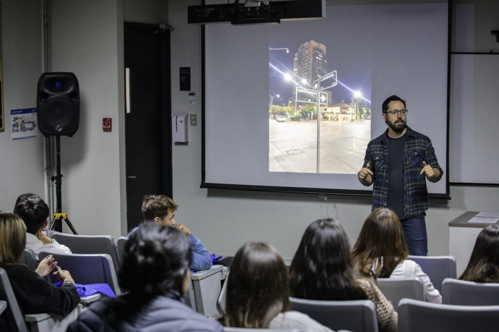 Durante la actividad, los estudiantes de tercero y cuarto medio reflexionaron junto al profesor de fotografía y Alumni UDD, Matías Searle. La conversación dictó sobre la incorporación de IA en el desarrollo y la preproducción como una herramienta a favor y no en reemplazo del humano.