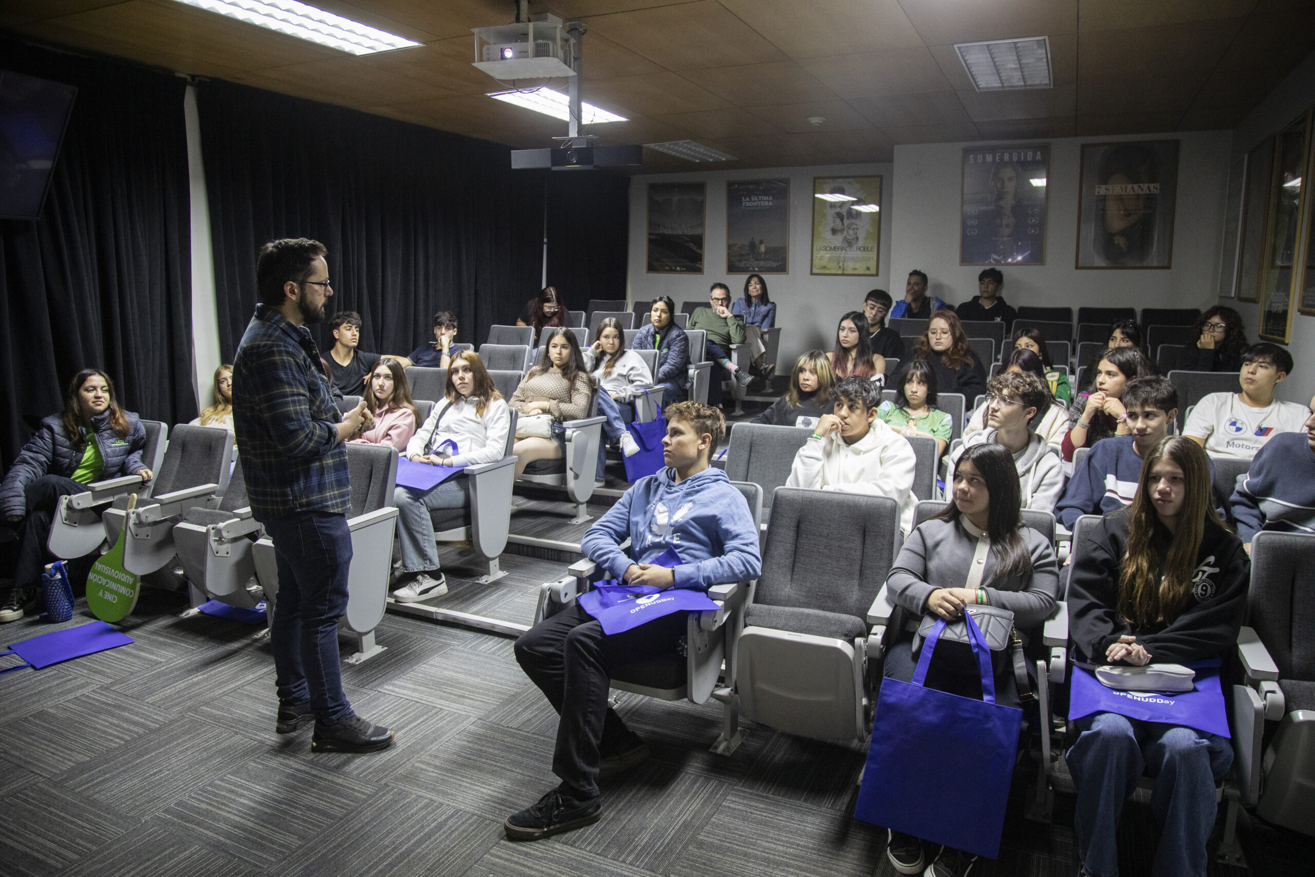 Además, los estudiantes pudieron conocer cómo son los cursos que se imparten, los viajes comerciales y educativos que se realizan, las posibilidades de hacer intercambios o prácticas internacionales, recorrer festivales y mercados junto al equipo de distribución UDD e incluso conversaron directamente con el Alumni Lucas Benavente, sobre su experiencia grabando el largometraje de egreso.